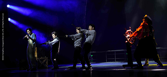 剧场变身为巨大的“海底世界”,舞台延伸至观众席上空,大型海洋生物近在咫尺,颠覆室内剧场观剧体验!